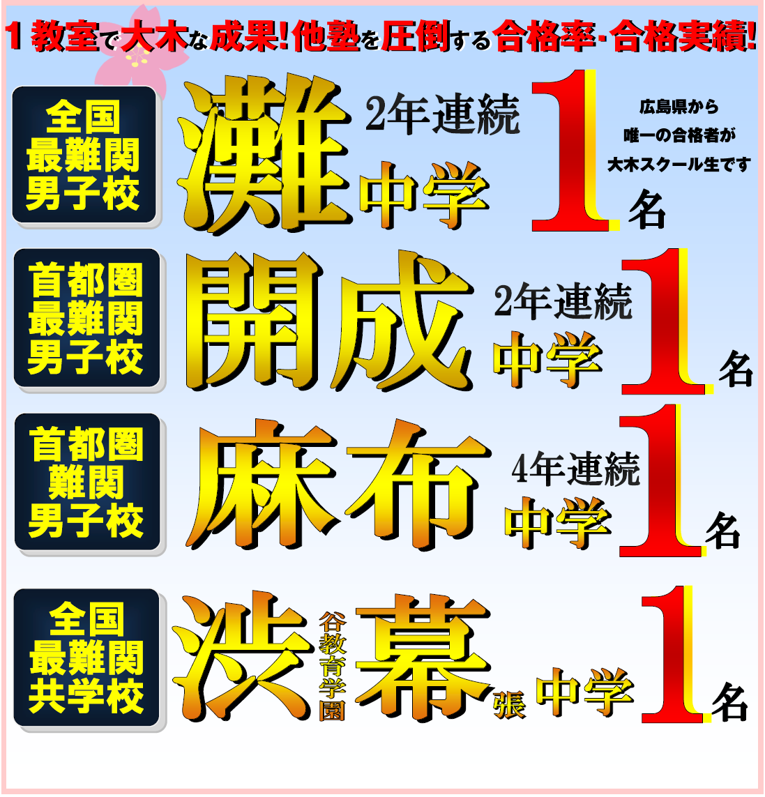 小学受験・中学受験・大学受験で抜群の合格実績広島で進学塾を選ぶなら、大木スクール