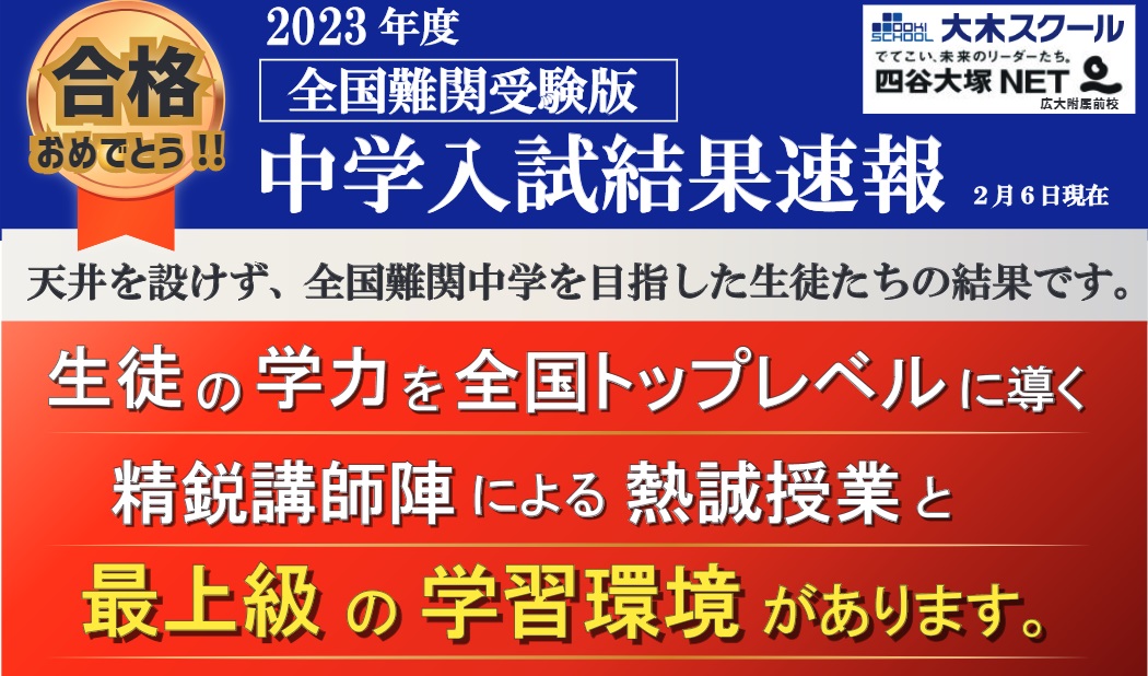 2023年度 全国難関中学入試合格実績